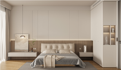 Achieve a sophisticated and relaxing atmosphere in your bedroom with light tones and accent colors. Bring a premium feel to your home without compromising comfort.